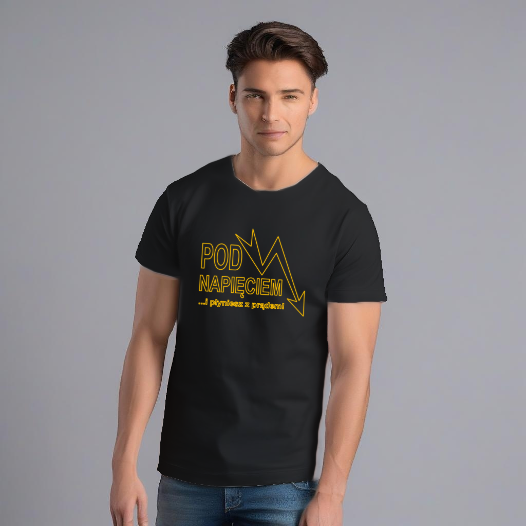 Koszulka męska typu T-Shirt z logo: „Pod Napięciem …i płyniesz z prądem”